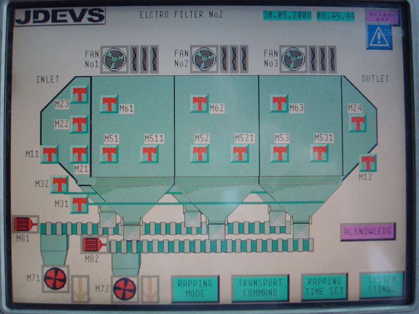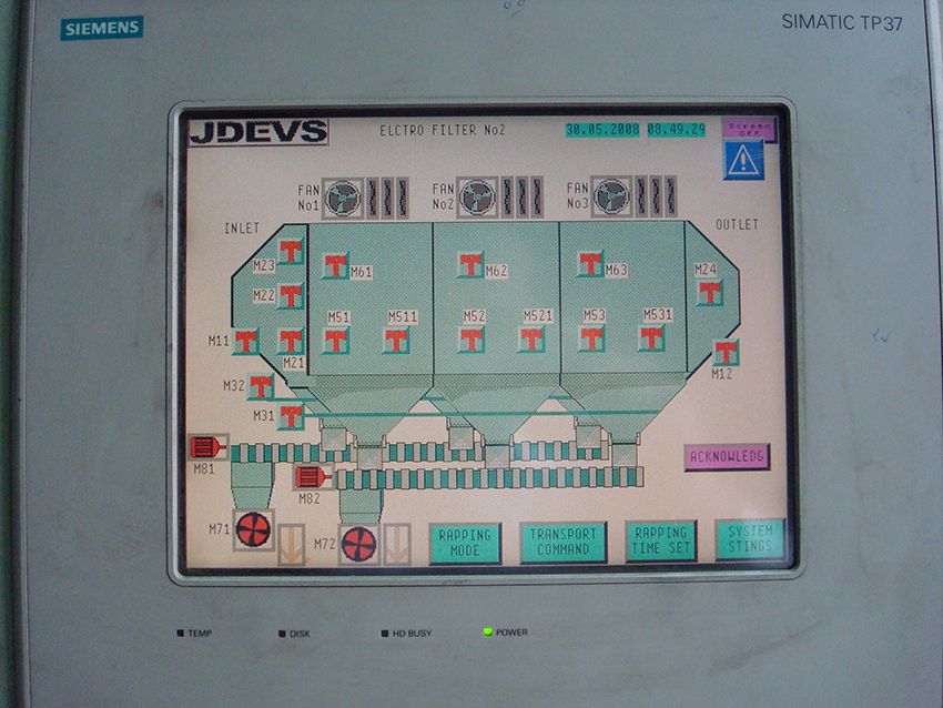 طراحی، ساخت ،نصب وراه اندازی وهمچنین آموزش سیستم کنترل ومانیتورینگ الکتروفیلترهای مجتمع مس خاتون آباد طی قراردادی به این شرکت واگذار گردید. این شرکت پس از طراحی ،ساخت تابلو ها وبرنامه نویسی سیتم کنترل ومانیتورینگ ، نصب وراه انداز ی این پروژه را درکوتاهترین زمان ممکن وبارضایت کامل کار فرما به پایان رساند .درسیستم کنترل این پروزه از سری 7s زیمنس ومانیتورنگ WINCC استفاده گردید